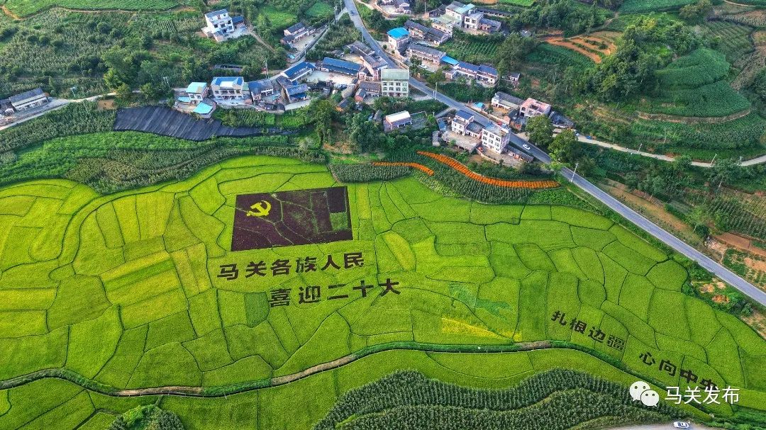 马关县马白镇文华村委会阿黑村小组的群众充分发挥智慧,在一片稻田里用秧苗种出“马关各族人民喜迎党的二十大”“扎根边疆 心向中央”“民族团结一家亲”等字样,他们把脚下的土地变成艺术创作的舞台,让土地的经济效益和生态效益同步提升,助力乡村振兴。