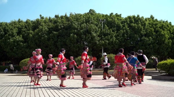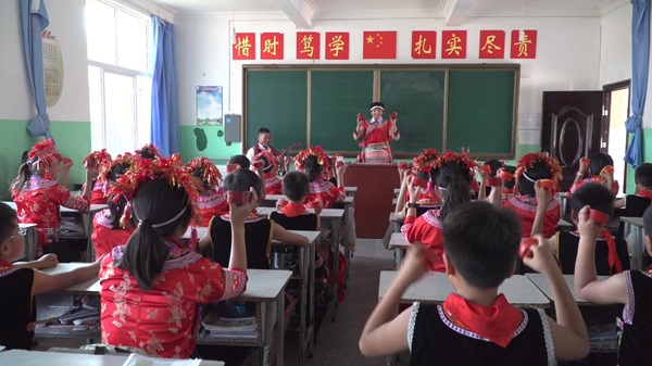 普玉芬告诉记者:“我小时候不太会跳,长大以后喜欢学,就跟着长辈一起跳,慢慢地就学会跳烟盒舞。现在我们去学校教孩子们跳烟盒舞,孩子们也喜欢学,我想把每个人都教会,把烟盒舞文化传承下去。”