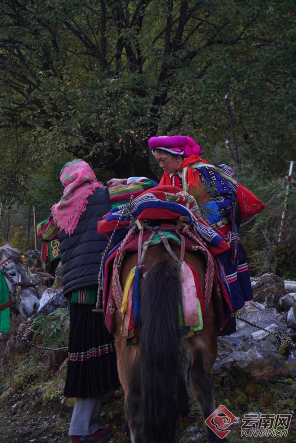尼汝村内,群众天地为幕载歌载舞,彩带鞍鞯扮靓骏马,用歌舞赞颂优良生态、美好生活,祭山跑马祈求来年五谷丰登、人畜兴旺。醉人秋景与尼汝少数民族风情相得益彰,构成一幅和美画卷。