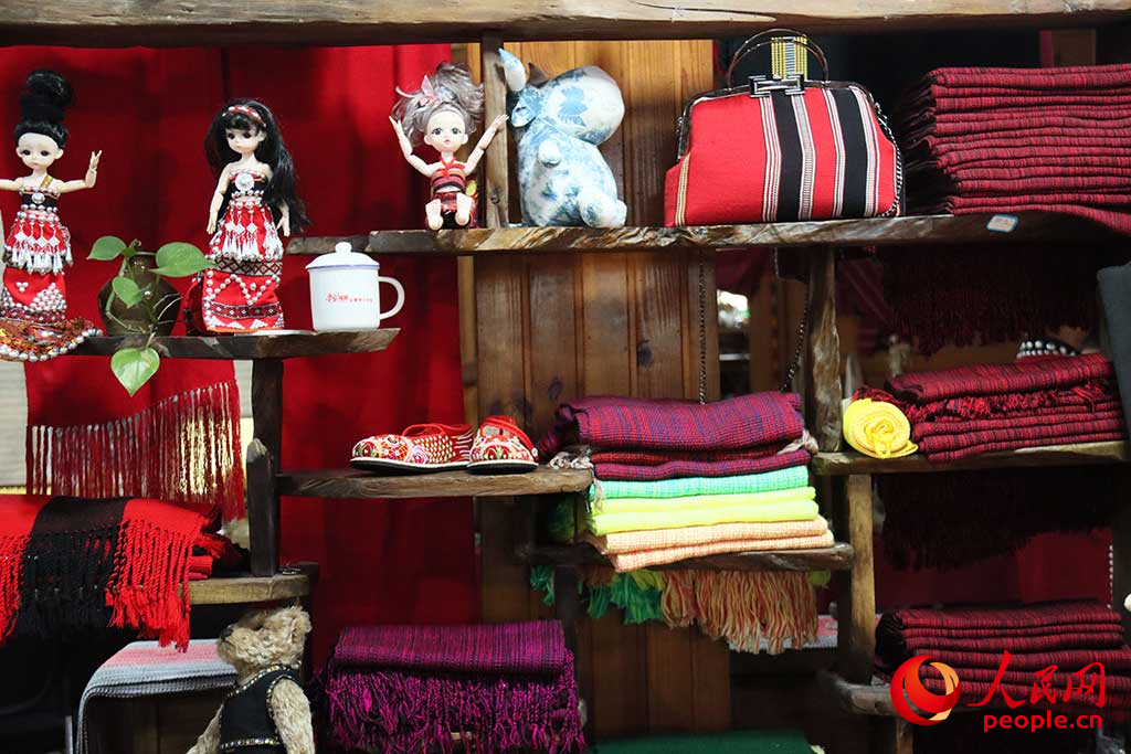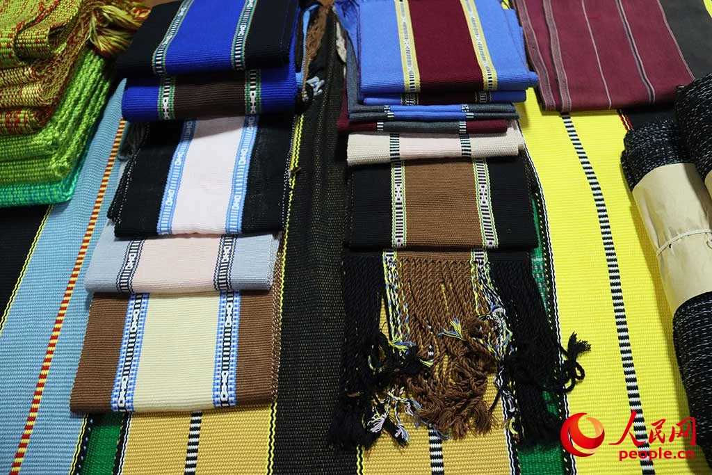 佤族织锦非遗工坊内摆放的佤族织锦产品。欧珠次仁 摄