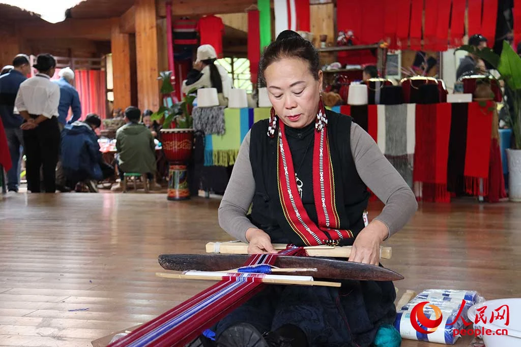佤族织锦非遗传承人李宪兰在示范织锦技艺。欧珠次仁 摄