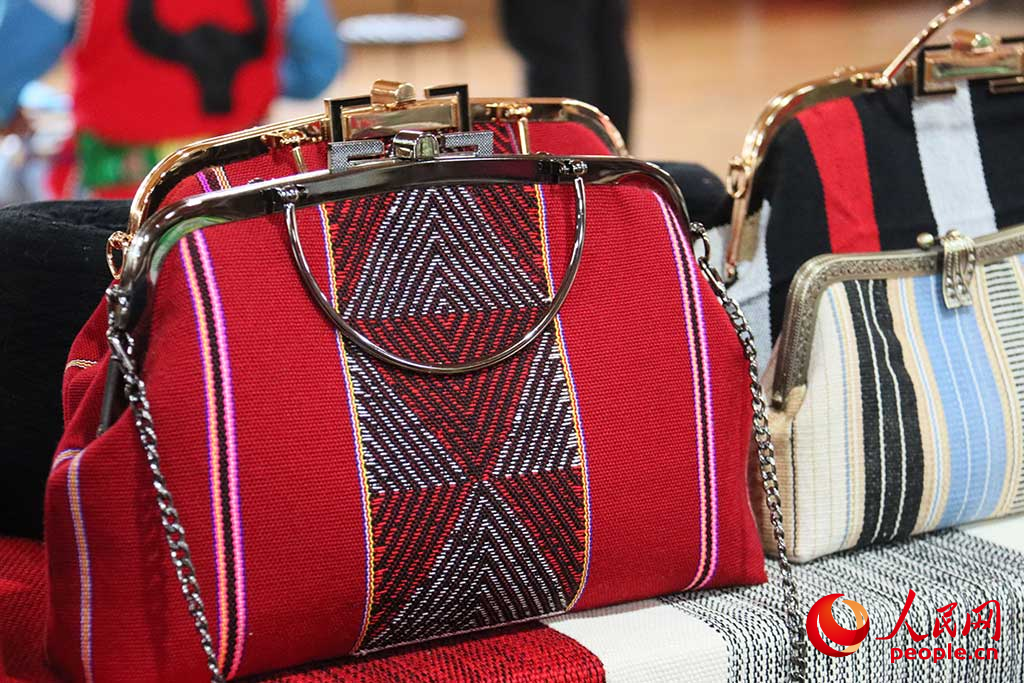 佤族织锦非遗工坊内摆放的手包。欧珠次仁 摄