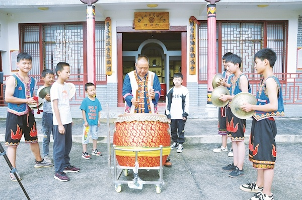 中村乡非遗传承人向青少年传授非遗技艺。