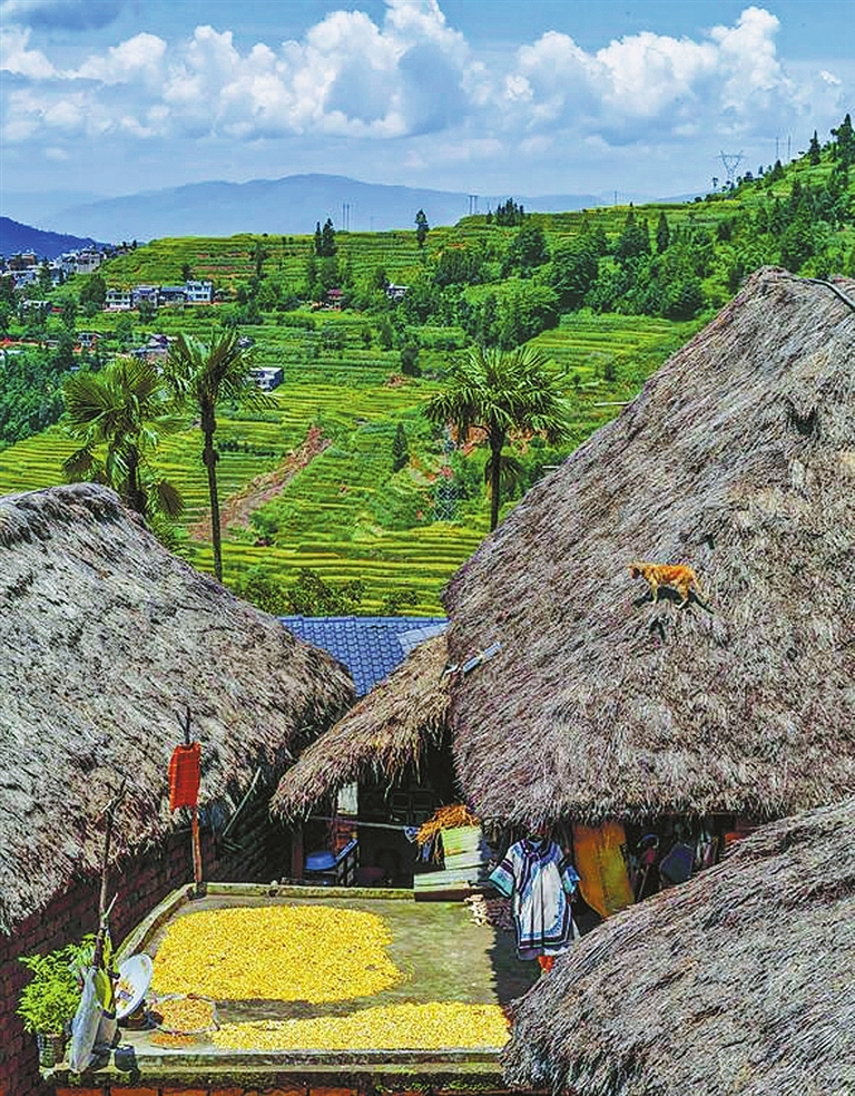 在红河县,获国家和省级同时命名的少数民族特色村寨还有乐育镇然仁村委会格伍村民小组。走进该村,村头巷尾的手绘图让人眼前一亮,图画色彩鲜艳,反映出浓郁的农耕气息和当地独有的文化特色。在蓝天白云、绿树繁花的点缀下,美丽乡村的诗意幸福画卷徐徐展开,呈现出“产业兴旺、生态宜居、乡风文明、治理有效、生活富裕”的美好景象。