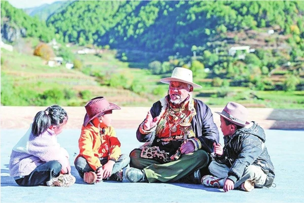 藏族爷爷给儿童讲民族团结的故事 胡妤雅/摄