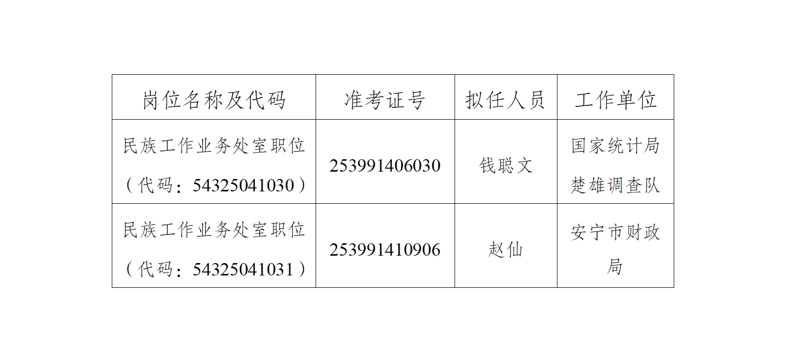 云南省民族宗教事务委员会2025年公开遴选公务员拟任人员名单