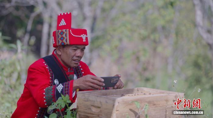 赵爱军查看村里的蜜蜂生长情况。受访者 供图