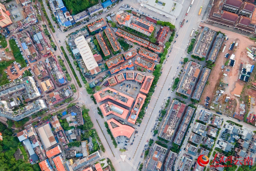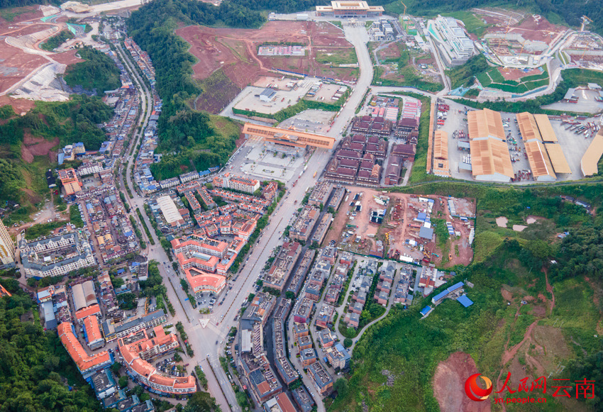 俯瞰磨憨边境口岸附近商业区。人民网记者 符皓 摄
