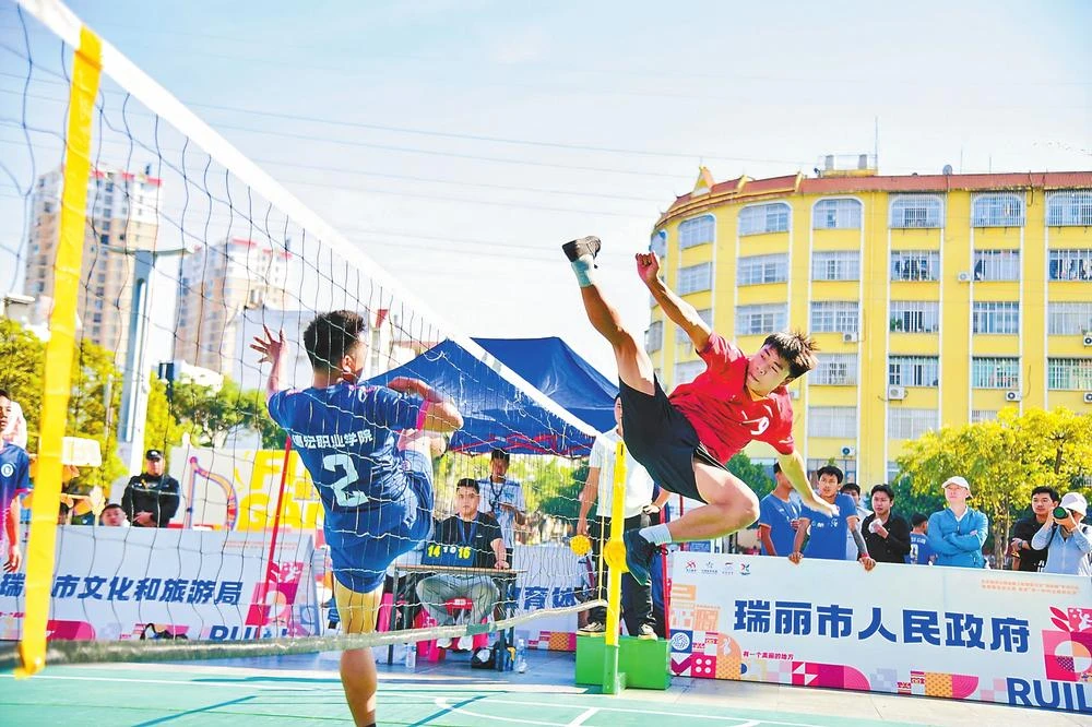 藤球比赛精彩纷呈。 通讯员 张筱婕 摄