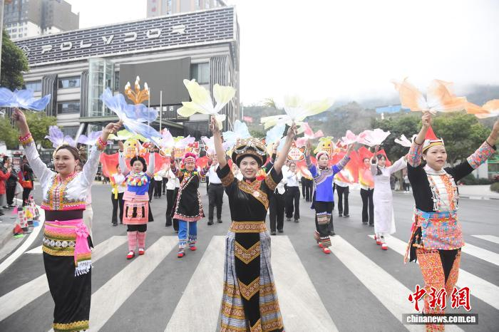 12月7日,金平民众身着盛装进行展演。黄兴鸿 摄