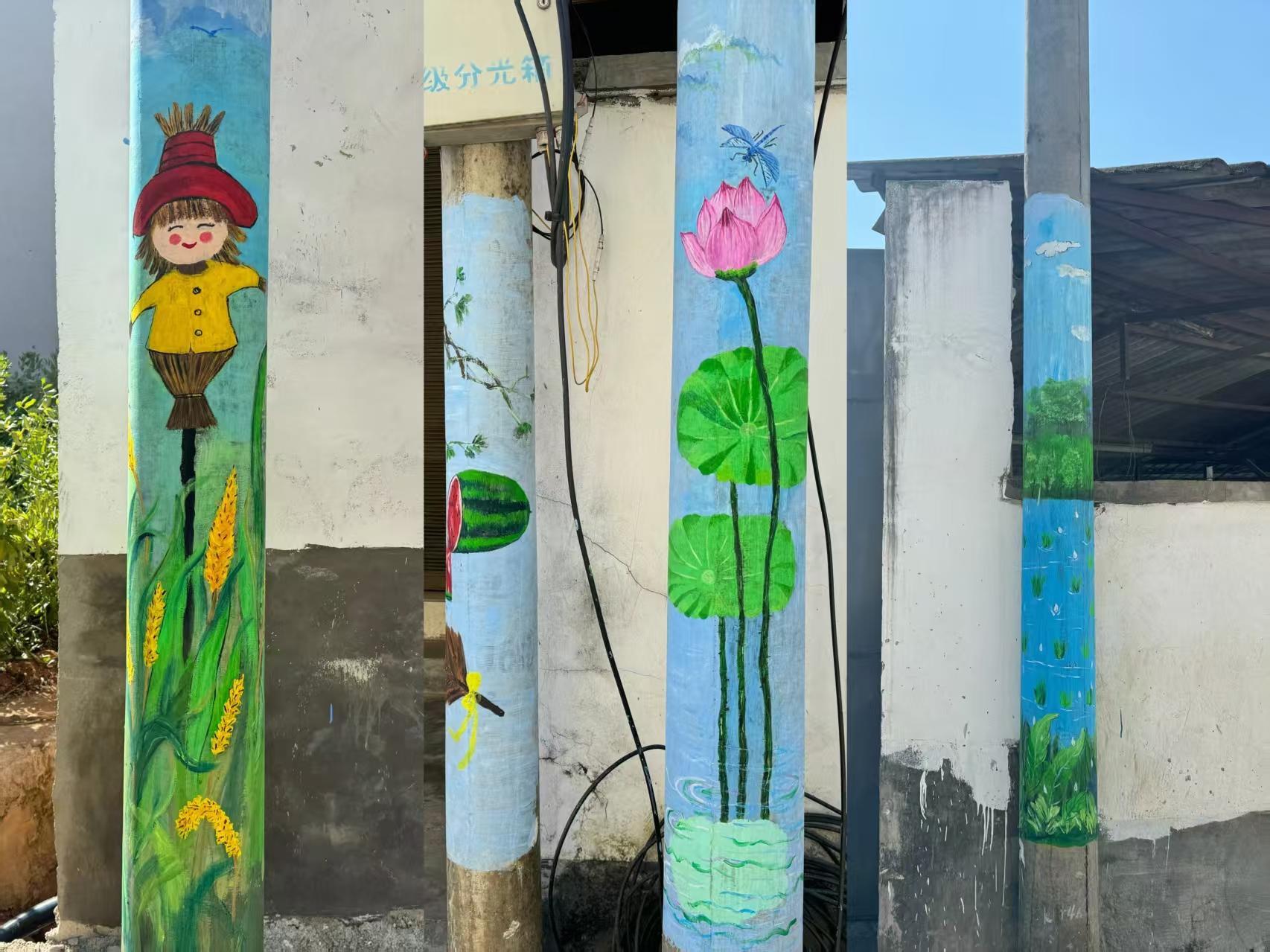 临翔区勐准村画着“二十四节气”的电线杆