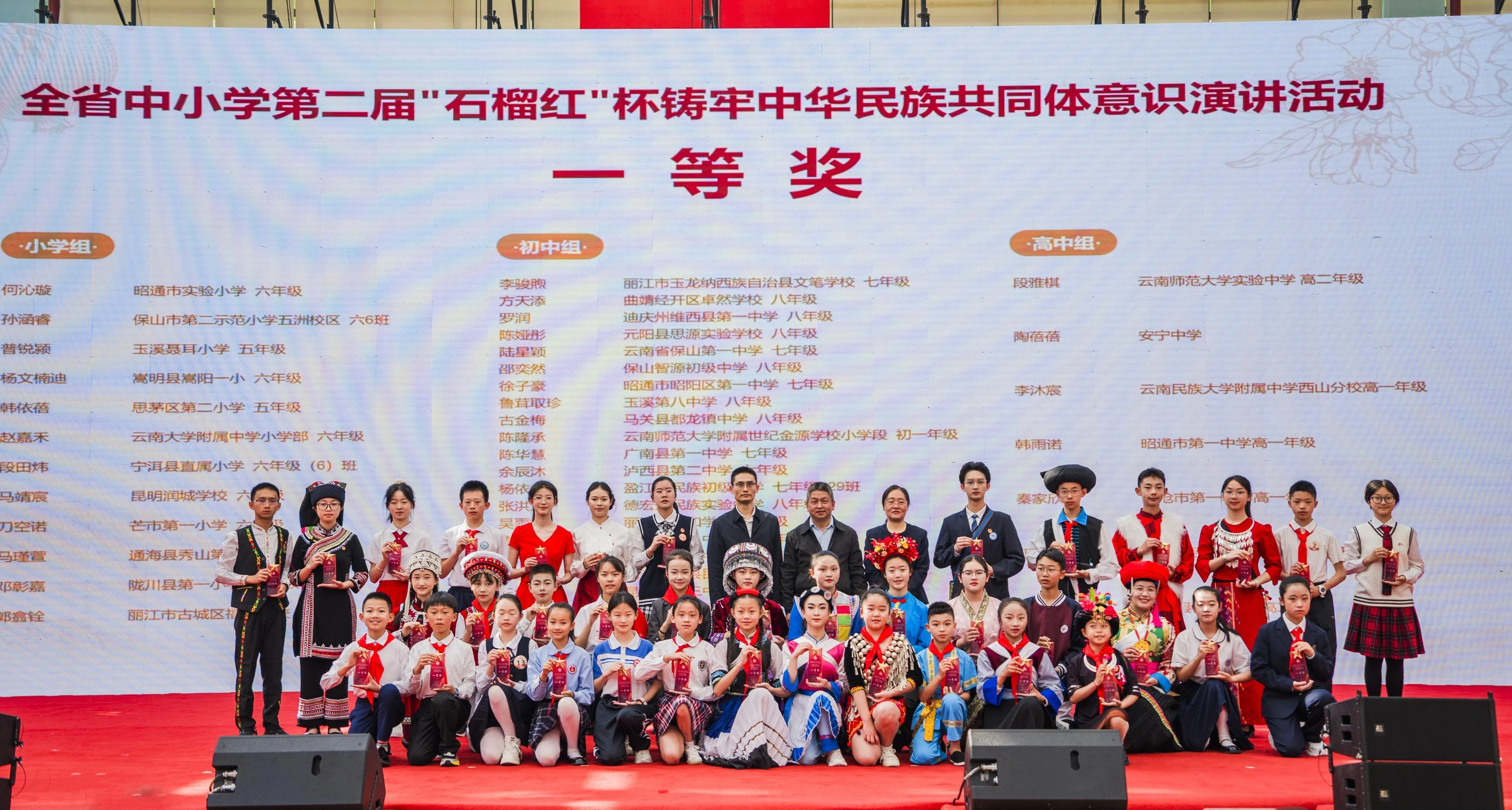 4月17日至19日,以“石榴花开结同心 携手共筑中国梦”为主题的全省中小学第二届“石榴红”杯铸牢中华民族共同体意识演讲活动在昆明润城学校举行。来自全省16个州(市)的200余名各族师生代表同台抒怀,以青春之声讲述中华民族一家亲的生动故事,集中展示云南省学校铸牢中华民族共同体意识教育的丰硕成果。团省委副书记魏同涛主持颁奖仪式,省民族宗教委党组成员、副主任李正洪出席颁奖仪式并致辞。
