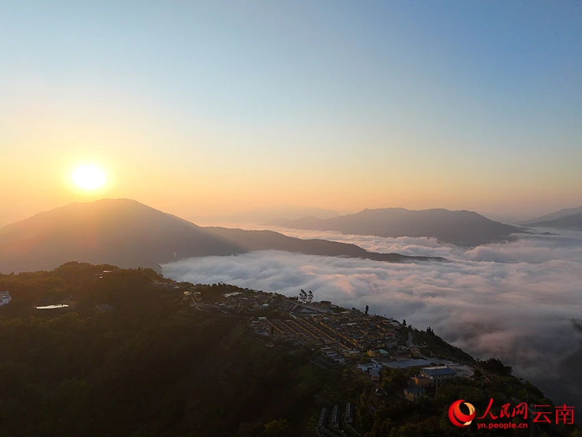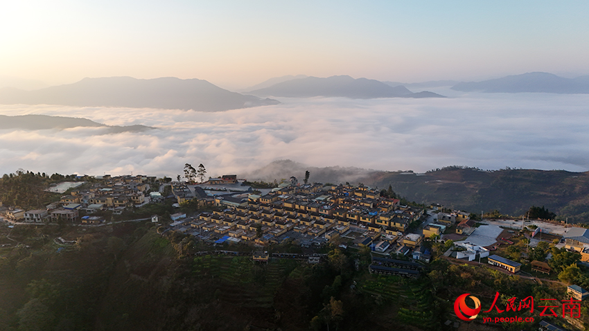 2月3日清晨,晨光洒落在云南省红河哈尼族彝族自治州绿春县半坡乡的边境幸福村二甫村,云海与日出、村寨相互交融,徐徐铺展出诗意栖居的边境村寨美丽画卷。