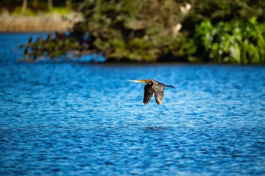 近日,近危珍稀鸟类黑腹蛇鹈现身云南省德宏傣族景颇族自治州瑞丽市弄莫湖公园,再度“打卡”这座边境城市。消息一经传开,全国各地鸟类摄影爱好者纷纷奔赴瑞丽,用镜头定格“蛇鸟”倩影,共同见证瑞丽优良生态的生动答卷。
