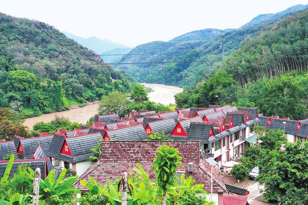 在云南省普洱市江城哈尼族彝族自治县曲水镇土卡河和李仙江交汇处的三角状小半岛上,高山村土卡河村民小组红灰色的联排傣族特色小洋楼在绿水青山间格外醒目。这里是我国在李仙江流域最末端的一个村寨,也是曲水镇在边境幸福村建设中最具代表性的案例。