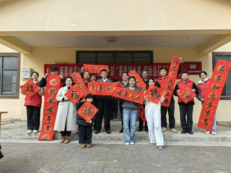 活动现场,老同志们铺纸研墨、凝神挥毫,“平安喜乐迎新春 国泰民安辞旧岁”“坚守岗位护平安 初心如磐守防线”等一副副寓意吉祥的春联、一个个遒劲有力的福字在笔墨流转间成形,赶集群众闻讯而来,有序排队领取春联,欢声笑语中满是迎新春的喜悦。书写结束后,老干部们采取入户送春联的方式,将春联祝福送到联防所、易地搬迁群众家中,为边境幸福村增添了满满的新春活力和浓浓的年味氛围。本次活动共送出300余副春联和500余个福字。